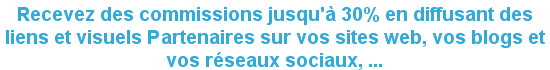 Chaque vente réalisée à partir de vos liens partenaires déclenche une commission jusqu'à 30%. Une interface en ligne vous permet de récupérer très simplement vos liens à placer sur vos sites web. L'interface Partenaire vous permet de suivre vos statistiques et vos ventes en direct.